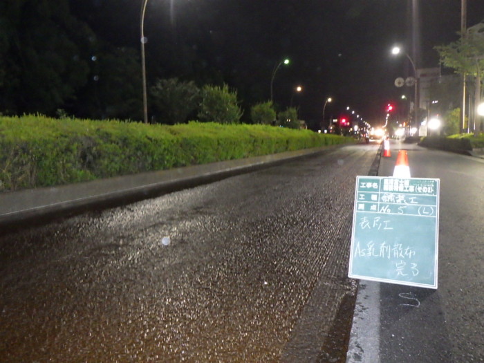 今回の施工区間はレクサス富士~米の宮神社前、前回同様に夜間工事となりましたが、近隣住民皆様のご理解とご協力で無事完成することができました。